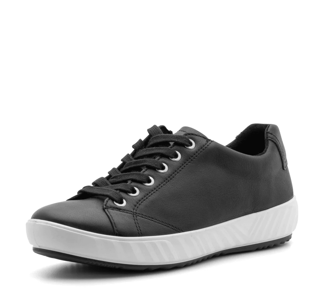 Discover the perfect blend of style and comfort with the Ara Shoes Alexandria Women's Sneaker in black. This trendy sneaker features a chic white sole, making it an ideal choice for both casual outings and active days. Experience unparalleled comfort with each step you take.