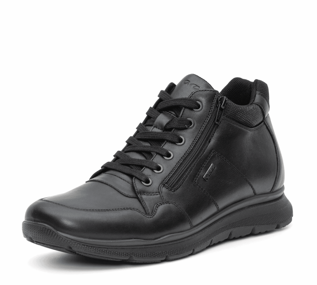 The Ara Shoes Braxton Men's GORE-TEX® Zip Boot - Black 01 11-24608-01 is not just a boot; it's an essential addition to your wardrobe. The lace-up entry offers a secure fit, while the contemporary design makes it versatile for both casual and formal occasions. Perfect for those rainy days, the GORE-TEX® waterproof technology ensures your feet remain dry and comfortable, no matter the weather.