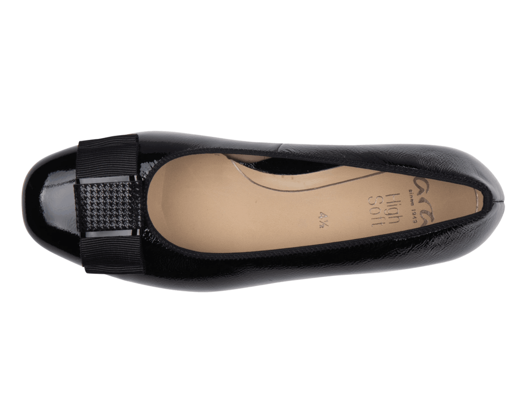 The Ara Shoes Garnet Women's Bow Block Heel Pump 35mm - Black is designed for the modern woman who values both style and comfort. With its elegant bow detail, this pump adds a touch of sophistication to any outfit. The elasticized topline provides a custom fit, allowing you to wear these shoes all day without discomfort.