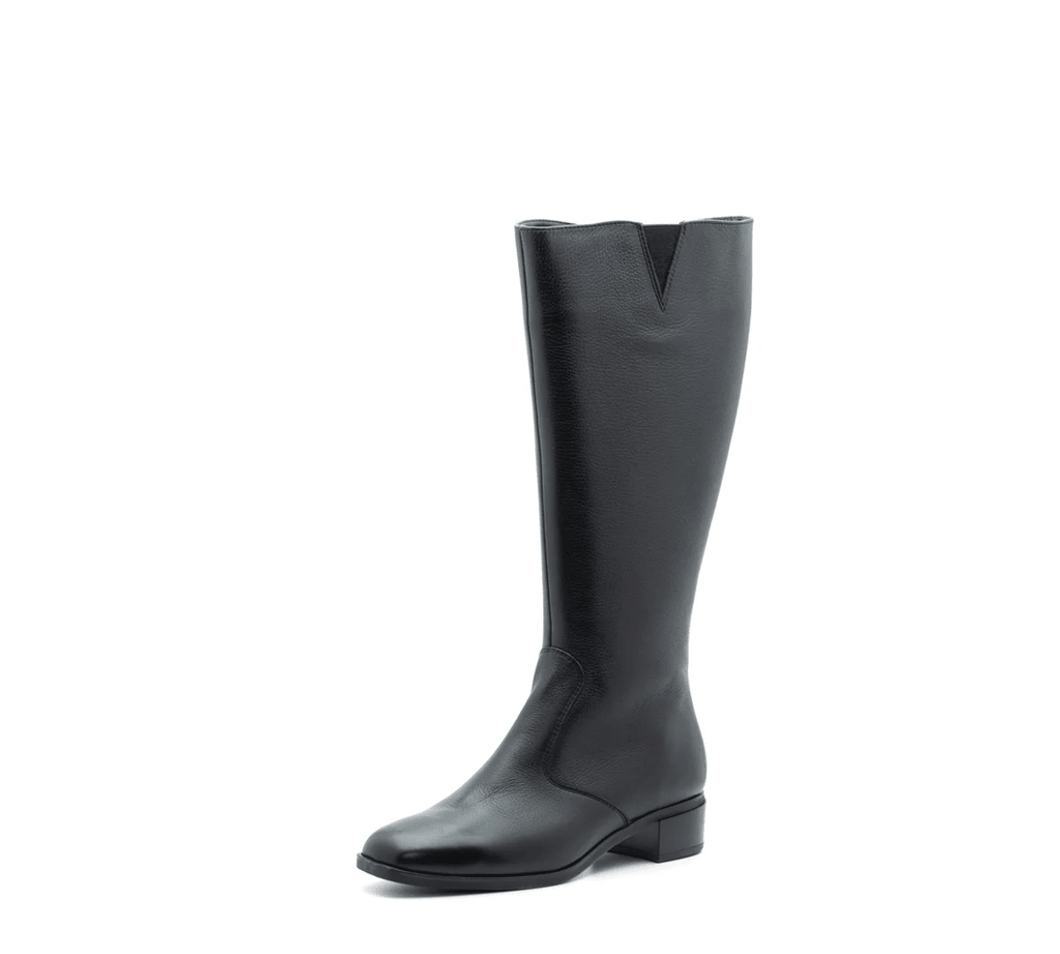 The Ara Shoes Grantham Women's Zip Calf Leather Boot is designed with a tall wide calf silhouette, ensuring both elegance and comfort. The luxurious black calf leather not only looks sophisticated but also offers versatile styling options. Whether you’re dressing up for a night out or looking for a chic everyday boot, the Grantham has you covered.
