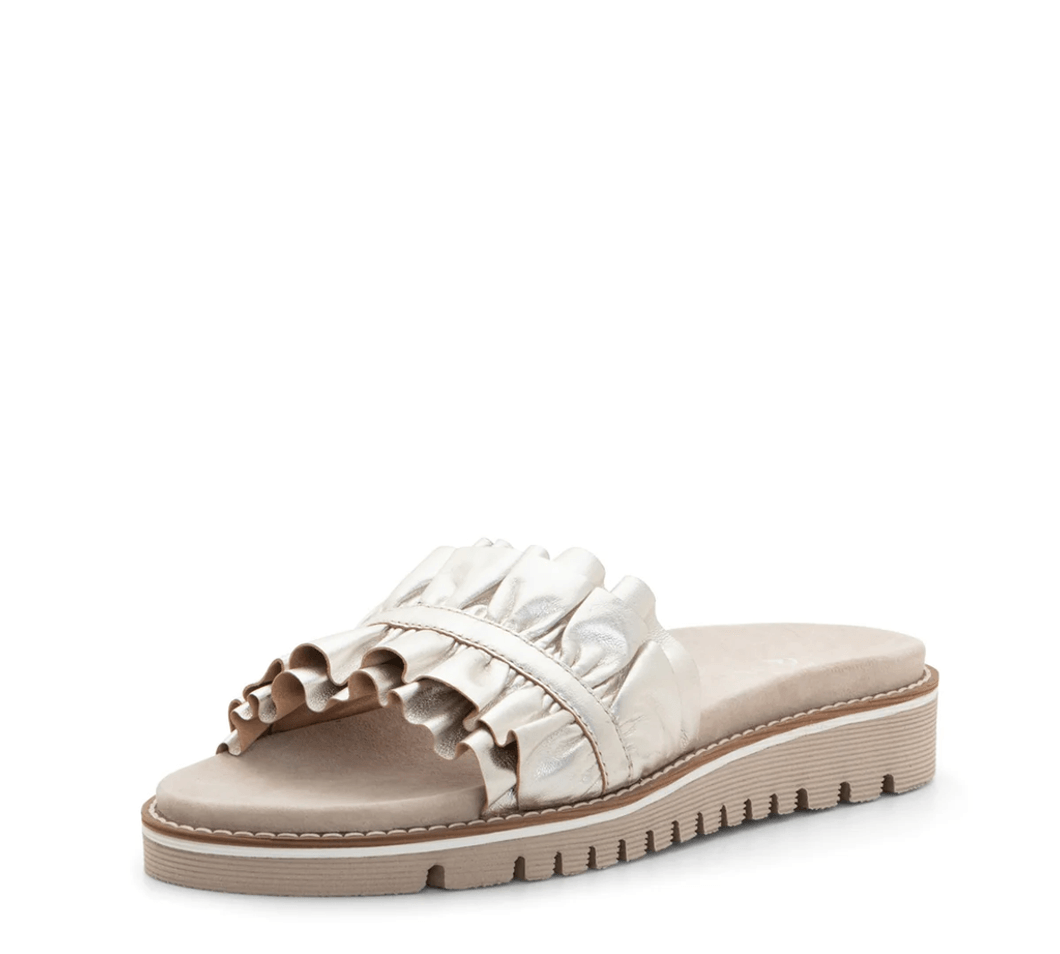 Ara Shoes Keyes Women's Ruffle Slide Sandal - Platinum