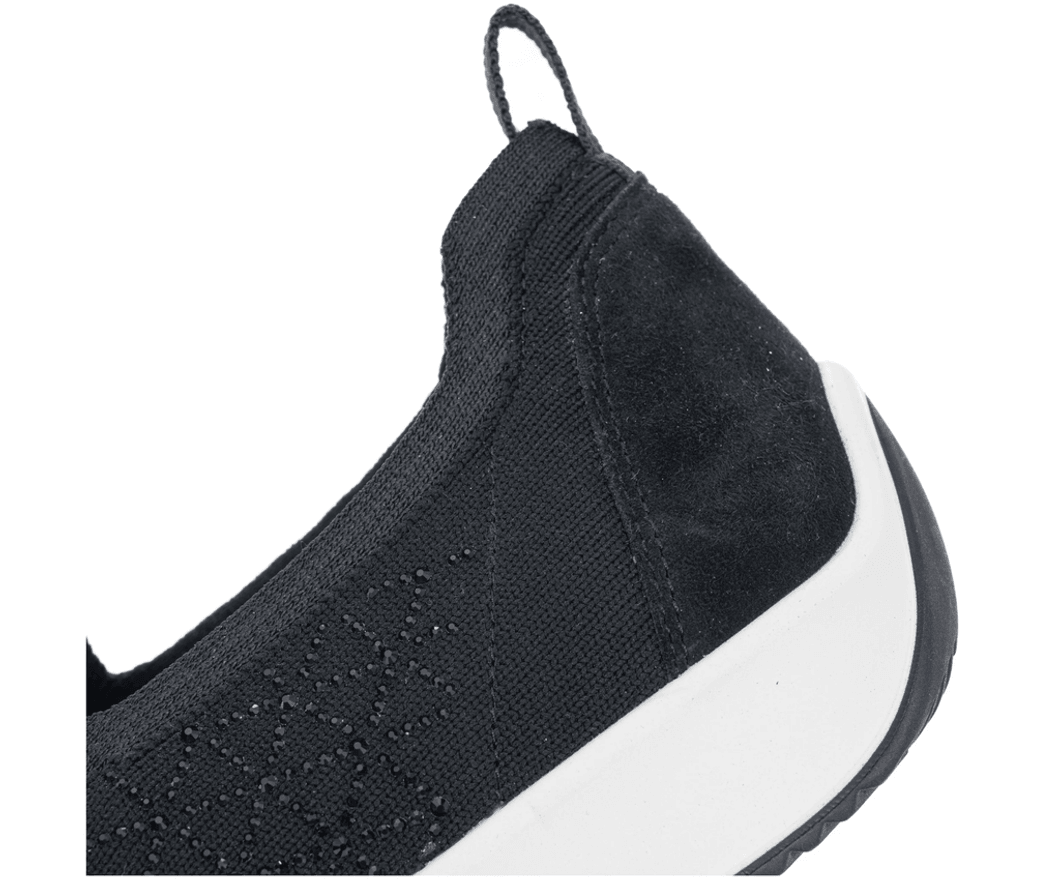 The Ara Shoes Lisbon Women's Rhinestone Stretch Slip-on Sneaker - Black is more than just a sneaker; it’s a statement piece. The woven-stretch upper adapts to your foot, providing a personalized fit that feels tailor-made. Whether you’re running errands or meeting friends for brunch, this sneaker delivers style without sacrificing comfort.