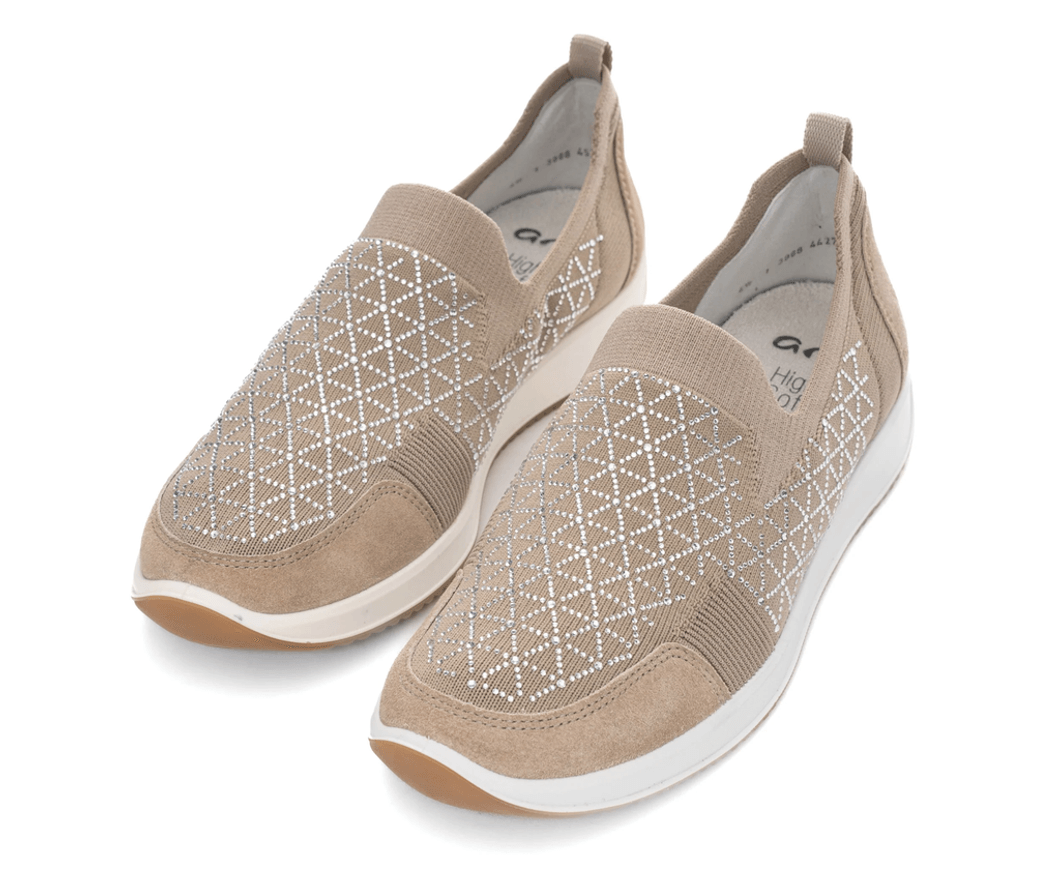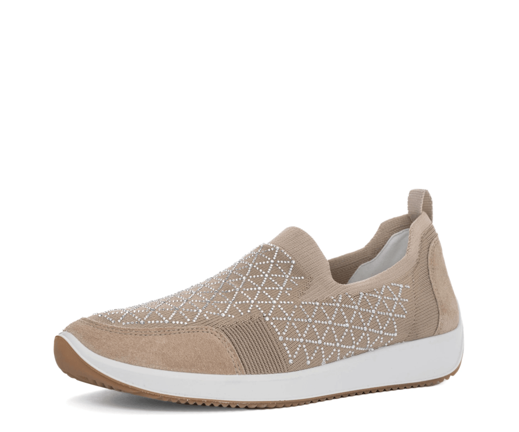 Ara Shoes Lisbon Women's Rhinestone Stretch Slip-on Sneaker - Sand 08 12-54050-08