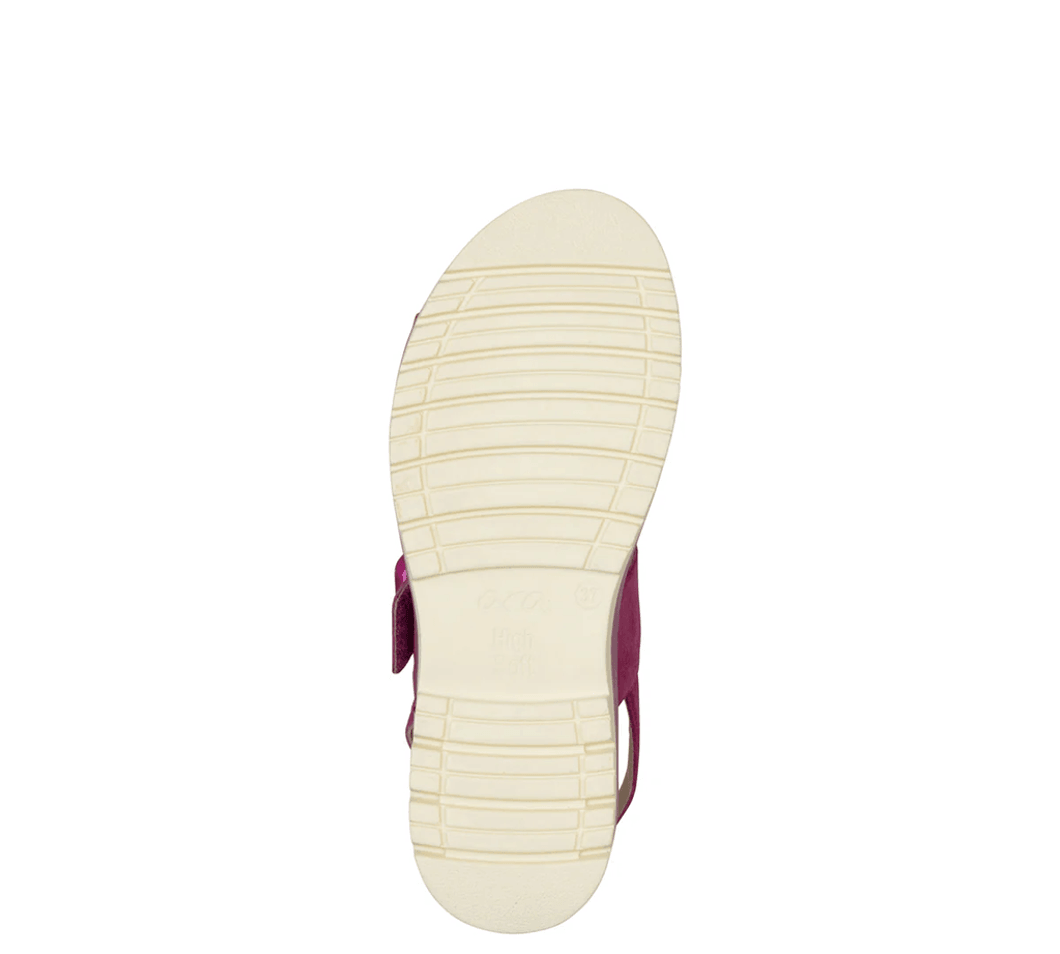 The Ara Shoes Marbella Women's Adjustable Sandal features a striking combination of poppy and pink kid suede that adds a pop of color to any outfit. With three adjustable straps and secure hook and loop closures, you can achieve the perfect fit for all-day wear. The acrylic buckles not only enhance the design but also provide additional support.