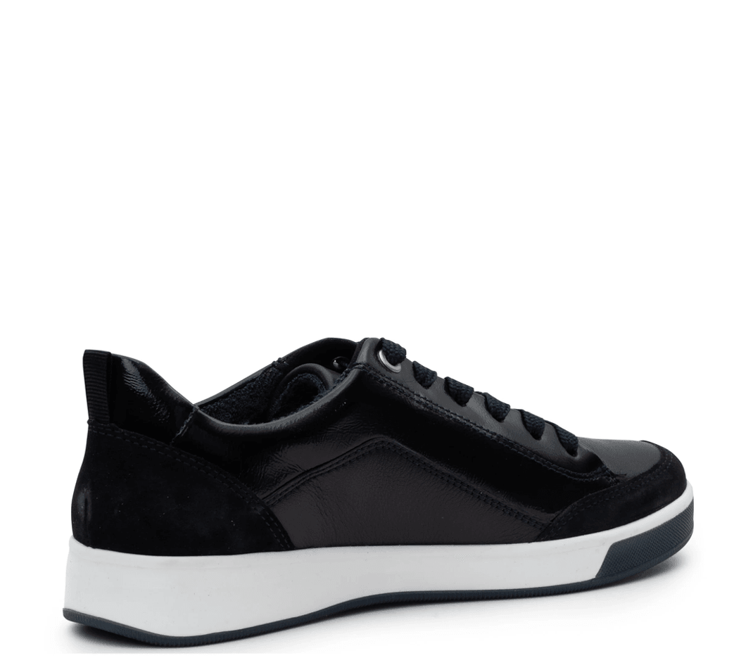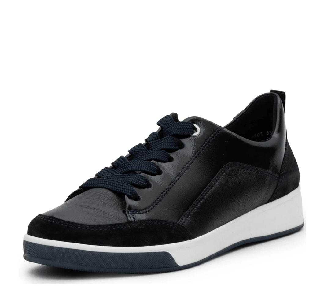 The Ara Shoes Redmond Women's Sneaker - Navy 02 34465-02 features a beautiful combination of navy blue suede, patent, and smooth leather, ensuring you stand out in any crowd. With sizes ranging from 6 to 11.5 (US) and a comfortable medium fitting (G), these sneakers cater to a variety of foot shapes.