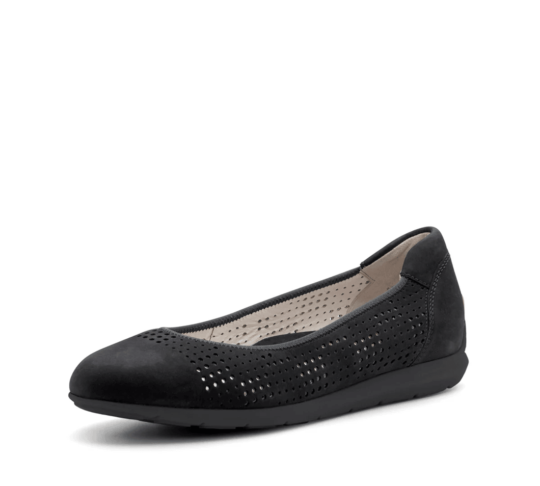 The Ara Shoes Sarah Perf Women's Comfort Ballet Flat - Black 81 is crafted for those who value both comfort and style. Its unique perforated upper not only enhances breathability but also adds a touch of sophistication. Whether you're heading to the office or out for a casual brunch, these ballet flats will elevate your look effortlessly.