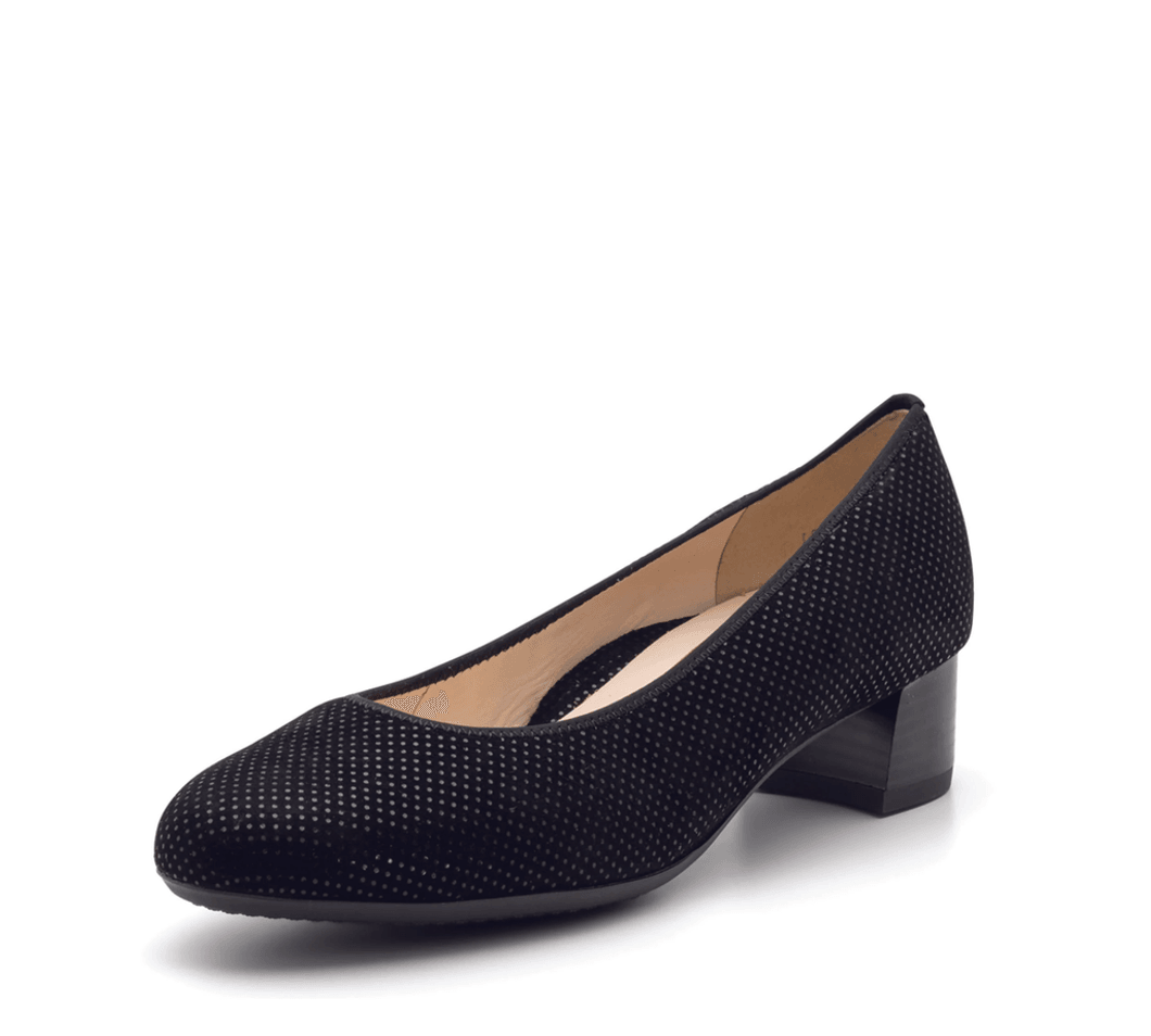 The Ara Shoes Vivian SP Women's Block Heel Pump 35mm - Black showcases high-quality craftsmanship and timeless design. With a heel height of 35mm (1.4 inches), this pump offers just the right amount of lift without sacrificing comfort. Available in sizes 5-11.5 (US) with a fitting of G (medium), it caters to a range of foot shapes.
